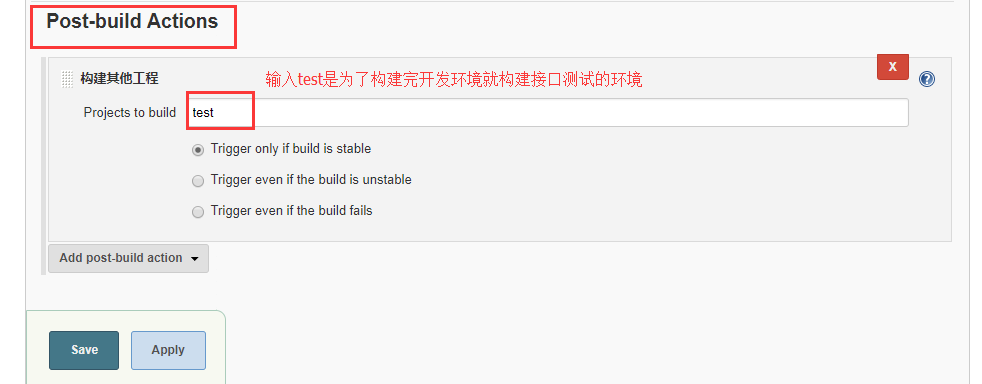 执行任务:执行deploy的任务,构建成功后会自动执行test的任务。