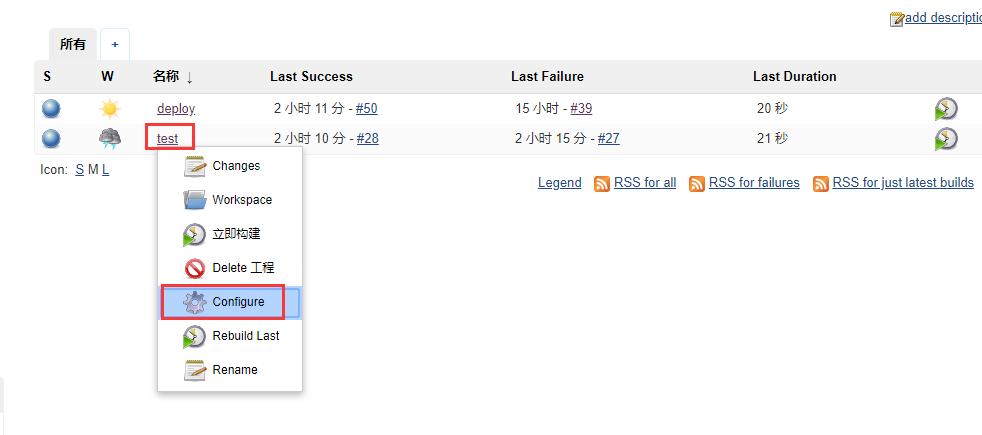 如果想修改上面的配置信息,可以选择任务名称,旁边会有一个小三角,然后选择Configure