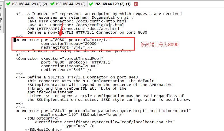 修改tomcat的端口号,进入配置文件中:vim conf/server.xml