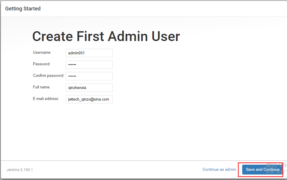 ERROR: The password entered is incorrect, please check the file for the correct password这时,再次 jenkins-b 日志中的解锁密码(Unlock password)输入到表单中即可进入下一步。接下来就是按照提示一步步完成了。在 jenkins-b 安装步骤的最后一步,我们设置了管理员的用户名密码:admin/admin。然后就算完成任务了。