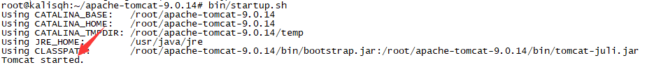 进入tomcat目录启动tomcat服务:bin/startup.sh