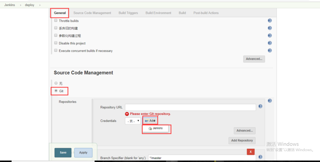 补充:jenkins部署时选择不同的分支: