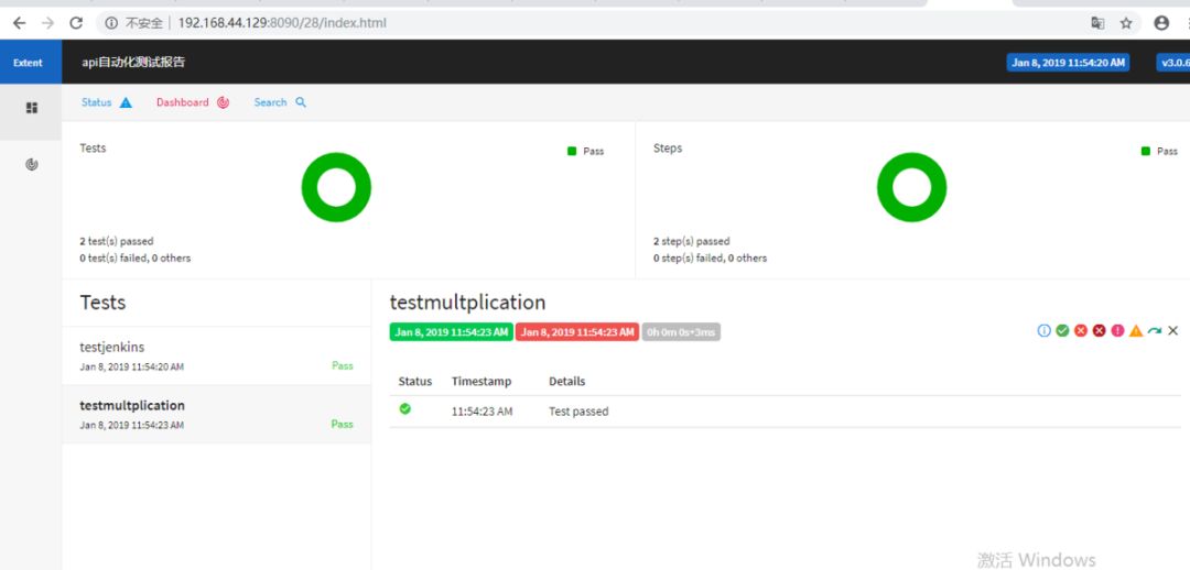 构建成功后访问测试报告地址:http://192.168.44.129:8090/28/index.html,28是构建号