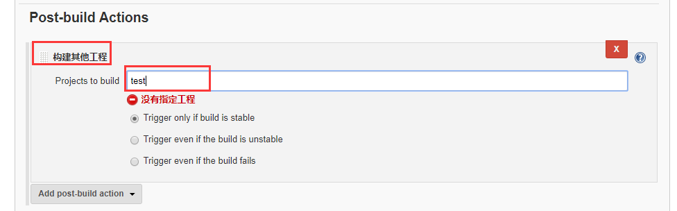 其中 jenkins-a 任务 x 的 build number 会升到 2,而 jenkins-b 保持的是 1。这时,单独执行 jenkins-b 的任务 x,日志会出现错误: