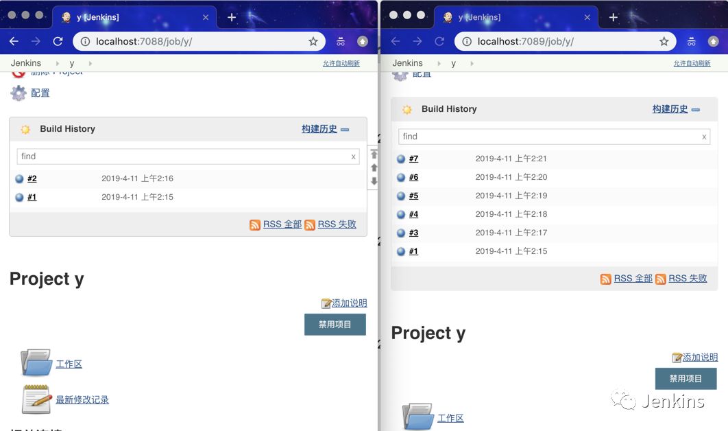 分别在两个 Jenkins master 上(几乎)开始同一个任务 x。其中一个任务的 build number 会更新,但是另一个不会。