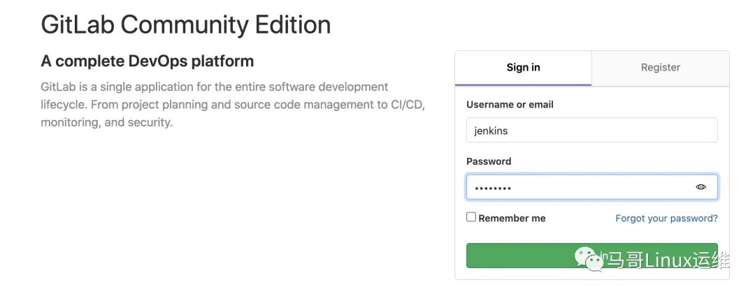 1.在Jenkins上为GitLab创建一个专有的拉取代码的账号Jenkins需要构建哪些项目就在GitLab给予账号相应权限 我这里已经创建过Jenkins用户,下面用它登录后添加SSH-KEY