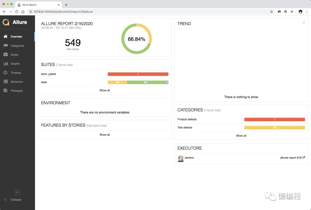 通过 allure 插件,将 jenkins、pytest、allure 链接在一起,pytest 负责测试,测试生成的报告可以通过 allure 生成图像化界面,而 jenkins 自动化两个过程。