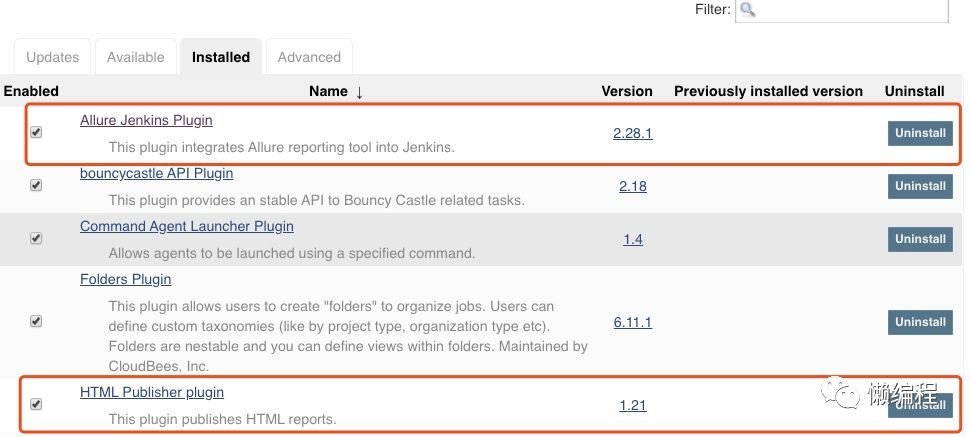 进入 Jenkins 的插件管理界面,安装「Allure Jenkins Plugin」,此外为了更好的显示 HTML 测试报告,继续安装「HTML Publisher Plugin」。