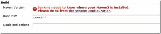 Jenkins needs to know where your Maven2 is installed.Please do so from the system configuration.
