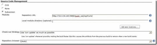 3.5)创建第2个job,配置和上面的配置相同。只需把svn地址改成:http://localhost/svn/Web