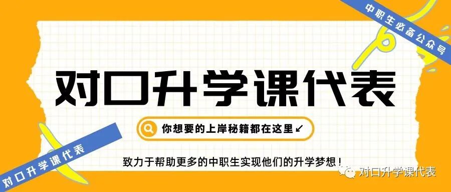 大家在备考过程中,可以把对口升学课代表微信公众号,推荐给身边的同学,里面很多文章对大家的备考帮助会很大!