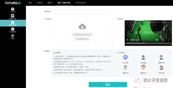 上传自己按要求制作的视频,点击提交,就能生成数字人了。