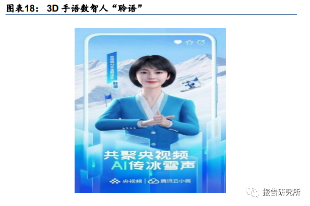 2、 中游平台层:AI 厂商、综合性互联网厂商一站式技术支持。以微软、腾讯等综合性互 联网厂商,科大讯飞、商汤科技等 AI 专长类厂商,原力数字、相芯科技等 CG(Computer Graphics)和 XR(Extended Reality)技术厂商,以及魔珐科技、拟仁智能等垂直虚拟数 字人厂商为代表。平台层企业对上游基础硬软件技术加以融合,结合自然语言处理、计算 机视觉等虚拟数字人核心技术,为下游应用层提供动捕、建模、渲染等制作环节的进一步 技术支撑以及一站式虚拟数字人解决方案;