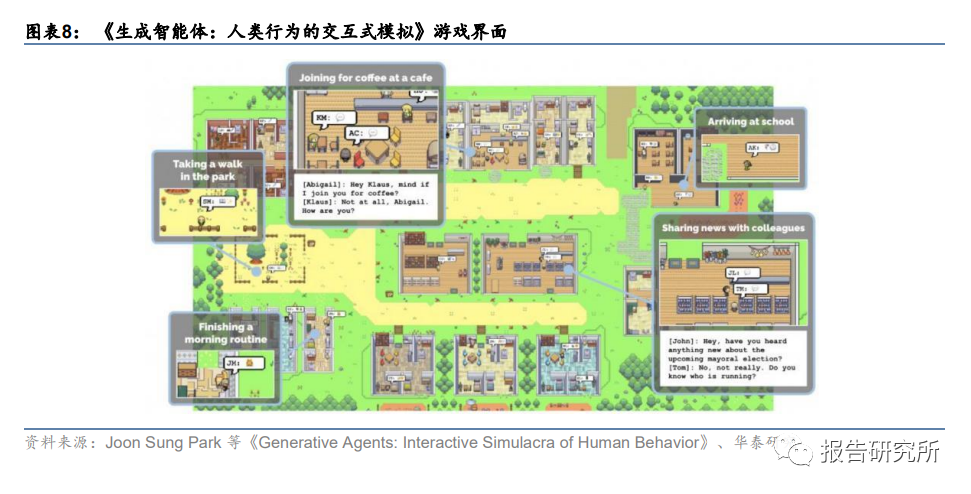 虚拟数字人从游戏中来:游戏行业是 AI 技术运用的前沿先行者,游戏技术研发推动虚拟数 字人行业发展。1、游戏产业是 AI 技术赋能虚拟数字人的先行者。游戏行业在 AI 技术运用方面走在前沿, AI 技术通过生成游戏角色的动画表情、提供角色外型定制化、生成游戏角色的智能行为等, 使玩家在游戏中获得栩栩如生的虚拟数字人形象,增强玩家在游戏互动中的沉浸感,提升 游戏的可玩性、趣味性和互动性。2、游戏产业推动虚拟数字人行业的形成和发展。游戏行业由于自身特点,在角色制作、IP 搭建、用户交互等方面积极研发与探索,在人物建模、动作捕获、虚拟数字人 IP 运营等方 面积累的了一系列经验,推动虚拟数字人行业的形成与发展。3、游戏产业推动 AI技术迭代创新,打破虚拟数字人发展技术壁垒。如当前 Unreal Engine、 Creation 等游戏引擎已经基本上使虚拟数字人实现了从很像到很真的跨越。今年 4 月,世界上第 1 款基于 ChatGPT 制作的游戏《生成智能体:人类行为的交互式模拟》在斯 坦福大学和谷歌研究院诞生,开发者通过使用 25 个数字人填充一个类似模拟人生的沙盒 RPG 游戏。