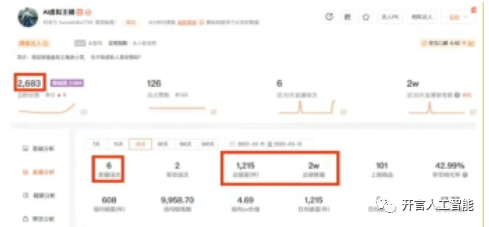 让我们先来看一组数据,这是我在蝉妈妈上查到的某位虚拟主播的带货数据。尽管该虚拟主播的粉丝数量还不到 3000 人,每次直播时间只有1到4个小时,但在过去的30天内总销量达到了1200单,总销售额达到了2万。虽然每单的客单价可能相对较低,但最令人关注的是,这位主播仅进行了6场直播。如果他能够每月直播20天,每天连续投入4个小时,将其作为副业来做,他至少可以达到每月3万的收入水平。我个人认为这样的表现非常出色。