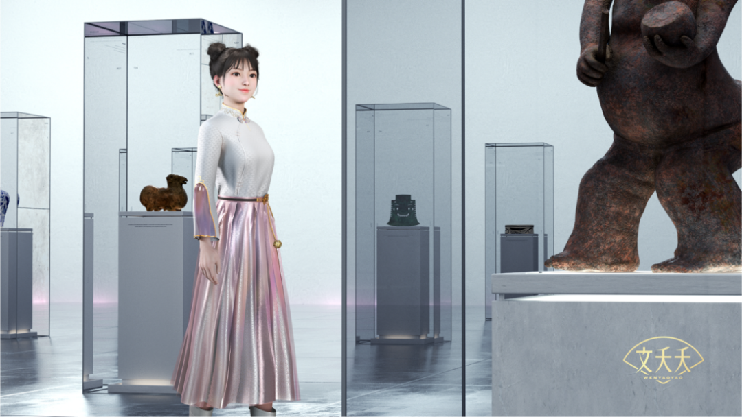 比如,今年国际博物馆日,中国文物交流中心推出的国内首个文博虚拟宣推官文夭夭,既有高颜值更有高智商。这个梳着双丸子头,装扮着唐代盛行的花钿装饰,总爱拿着一把红色折扇的小姑娘,经过超越人脑记忆的AI训练,对文物的历史、艺术、科学价值如数家珍,能够提供讲解、导览、咨询、对话、直播等各种服务。