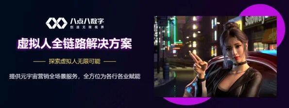 南京八点八数字科技有限公司是国内虚拟人全链路服务企业。公司主要产品是无代码智能化虚拟人内容创作分享平台XMEN.AI,提供虚拟人全链路技术解决方案,通过"人货场的思维方式打造行业通用解决方案,推动虚拟人在元宇宙空间中的应用场景向多元化升级发展,真正打造面向未来的沉浸式娱乐工作新方式。是2022中国AI企业商业落地百强、2022年度广告主金伙伴百强、ADMEN国际年度最具商业价值行业服务机构奖。