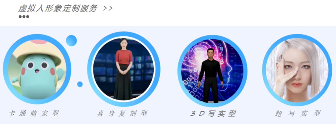 形象类型齐全,建模方式丰富,包含2D真人、2D卡通、3D写实、3D风格化、3D卡通等形象。腾讯云小微不仅拥有可租赁形象的分身超市,还可根据客户需求定制形象。其中,2D真人形象不仅高度还原真人模特,也可通过融合技术创造世界不存在的形象。腾讯拥有IP形象授权优势。