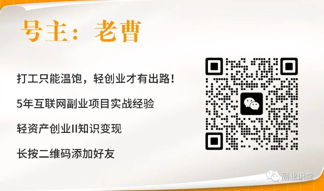 长按识别下方二维码进入平台后联系老曹免费学习本套课程!另外还有3000多部新手也能轻松学会的副业课程,每周更新20-50部新课!