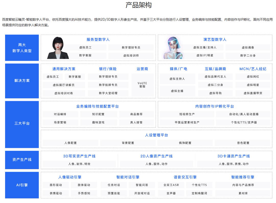 初始,在百度Create 2021(百度AI开发者大会)上,百度首席技术官王海峰发布智能数字人平台百度智能云曦灵。这是百度AI技术落地应用的最新成果,将进一步降低数字人的应用门槛,为各行各业提供多种数字人生产、内容创作、业务配置服务。