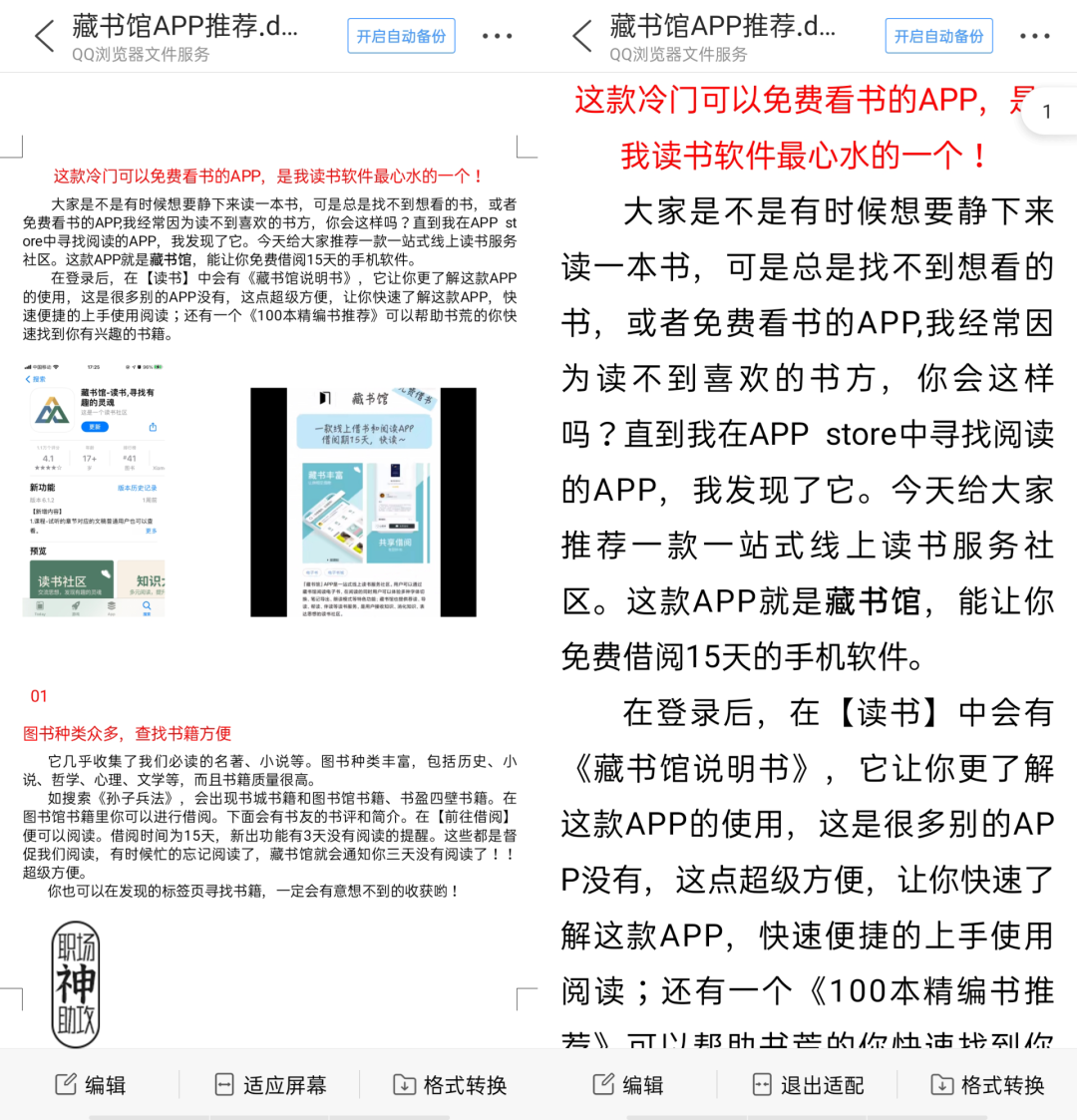 查看文档时,如果你觉得字太小看不清,还能点击下方工具栏里的【适应屏幕】,文档内容瞬间就自动匹配手机屏幕尺寸!