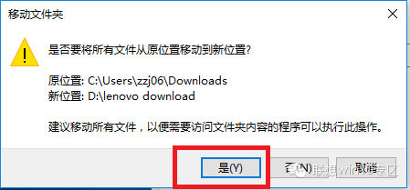 在下载文件夹上单击鼠标右键以后,我们选择属性打开。下载属性窗口中,在位置中,发现这个位置是可以修改的,点击这里移动按钮。