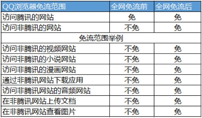 以下是QQ浏览器升级前、后免流范围对比,看了这个,你们就知道器哥绝对是诚意满满了~