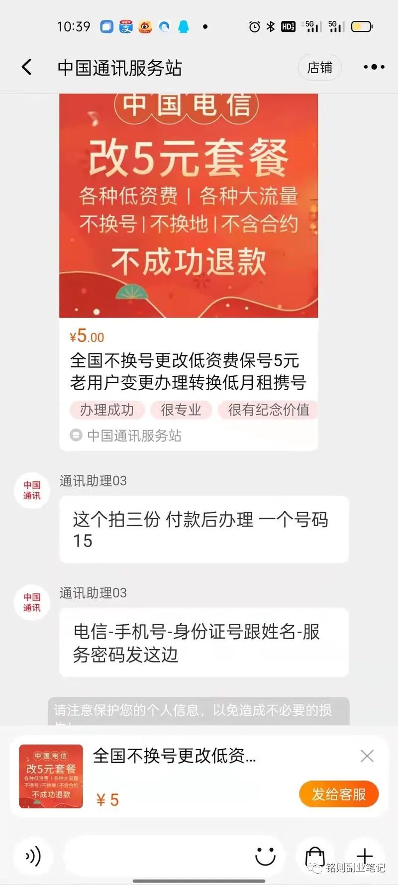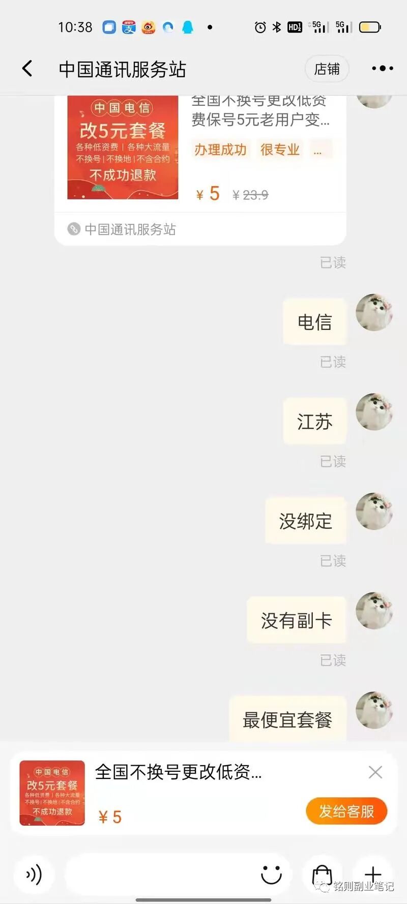 6.分享一个细分领域,给手机卡改套餐