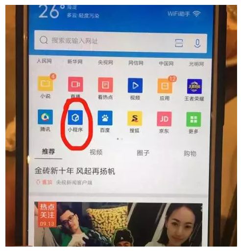 打开QQ浏览器,直接在首页就能看到小程序的入口。要不说自家的儿子就是偏爱呢,腾讯把小程序直接放在了百度、搜狐、京东的前面,等于是整个页面正中的位置,一目了然。