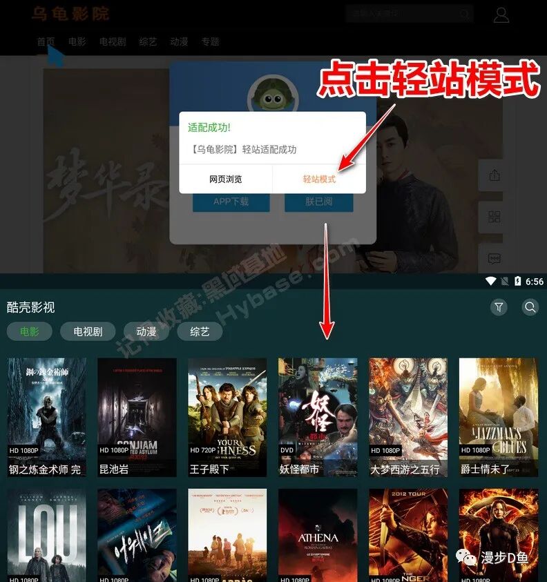 但你点击下方内置的几个优质视频站点,进入后会进行【轻站化】适配检测,如果支持适配,就会提示你进行选择,这时我们选择【轻站模式】,即可将该站资源适配成tv点播的模式。