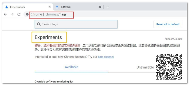 1.打开Chrome内核浏览器后,在浏览器地址栏输入chrome://flags/,并在电脑上按回车键。