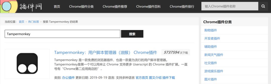为了测试这些网站收录得插件丰富程度,我们将以这篇文章介绍的三个插件为例:Tampermonkey、Infinity、划词翻译。