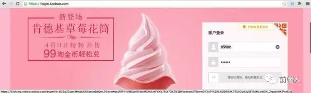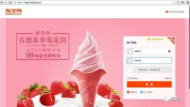 本次案例为纯javascript,先查看淘宝的登录页面。
