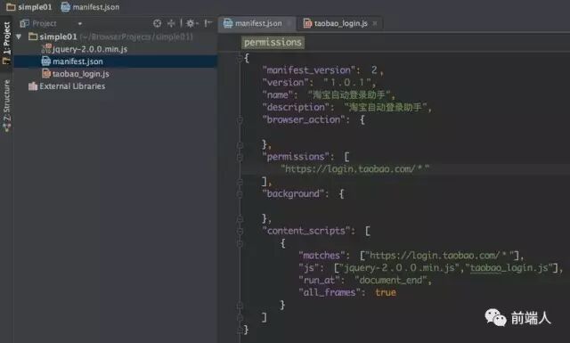 {"manifest_version":2,"version":"1.0.1","name":"淘宝自动登录助手","description":"淘宝自动登录助手","browser_action": {},"permissions": ["https://login.taobao.com/*"],"background": {},"content_scripts": [{"matches": ["https://login.taobao.com/*"],"js": ["taobao_login.js"],"run_at":"document_end","all_frames":true}]}案例结束!!