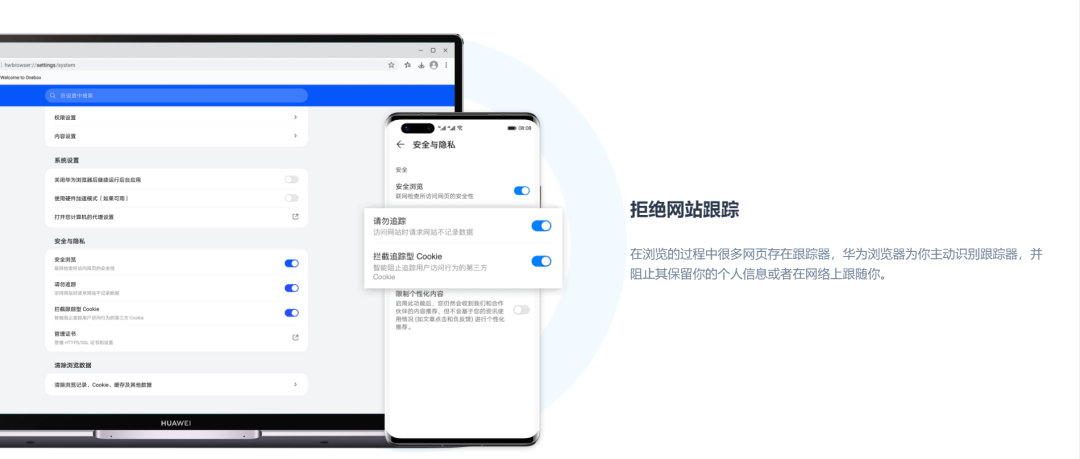 跟当下主流浏览器一样,华为浏览器也是基于Chromium内核开发的,隐私做的也不错。