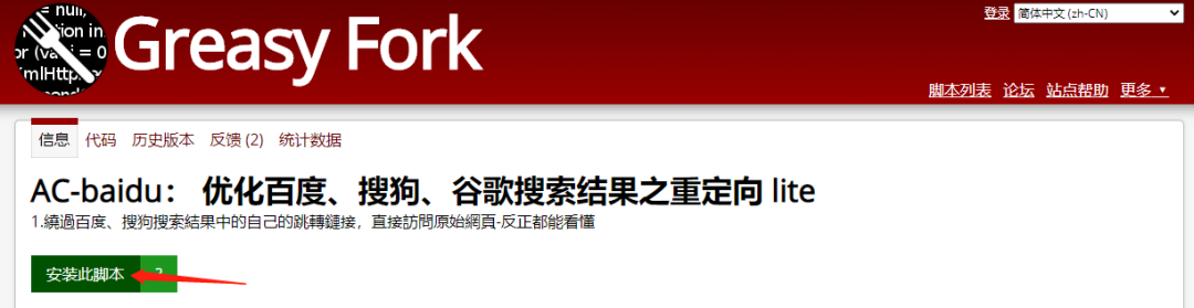 里面有很多脚本源站,经常用的就是GreasyFork脚本源了,点击这里进去