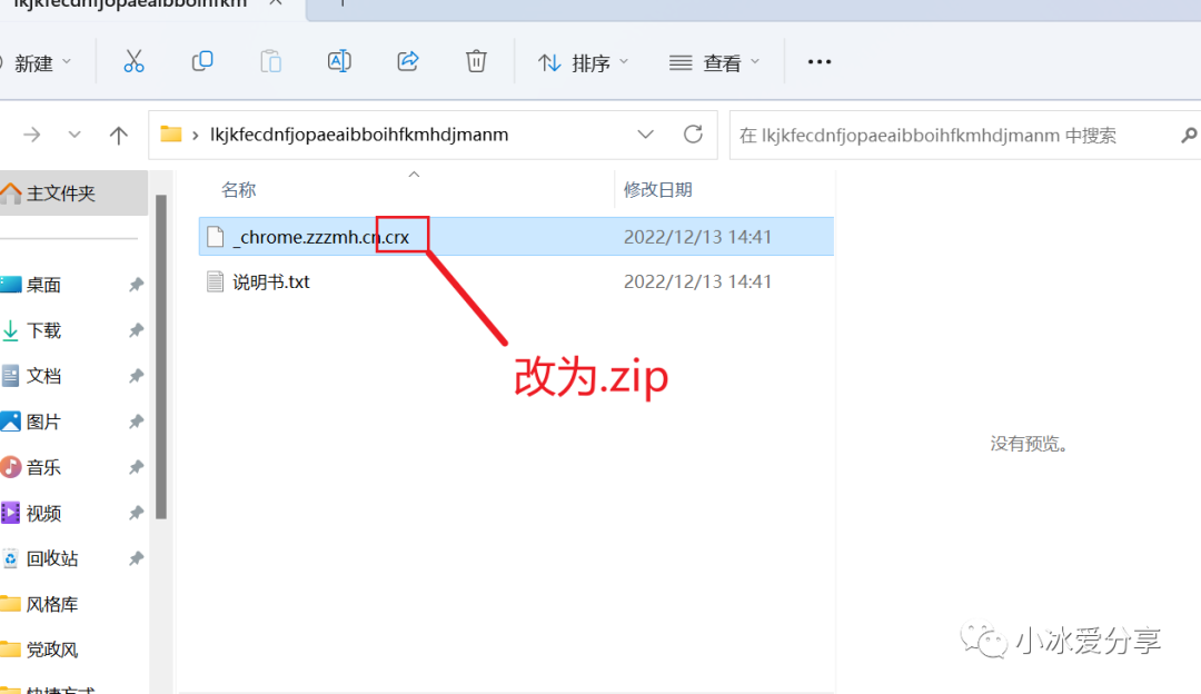 第五、如果拖拽插件显示安装错误,把下载好的插件后缀名由「.crx改为.zip」