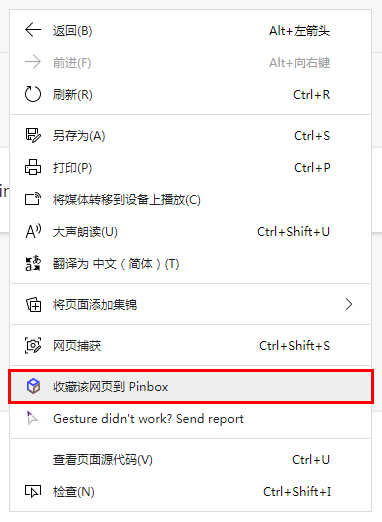 这款插件主打跨平台收藏服务,可以让用户在不同浏览器中共享收藏内容,使用方式也很简单,安装完成并注册账号之后,我们就可以通过右键菜单,或是直接点击右上角工具栏中的Pinbox按钮将当前网页收藏到Pinbox中。