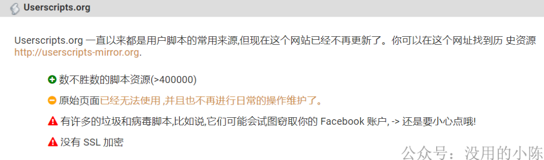 需要注意的是:网上关于油猴脚本的内容很多,其中也会存在恶意脚本,所以大家按需下载就好了,不要随意下载或者在一些不正规的网站上下载,另外,也要注意适量,过多的扩展可能会减慢浏览器的运行速度(内存较小的小伙伴可以试试火狐浏览器,也是个很棒的浏览器哦)