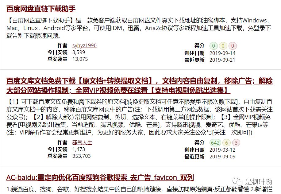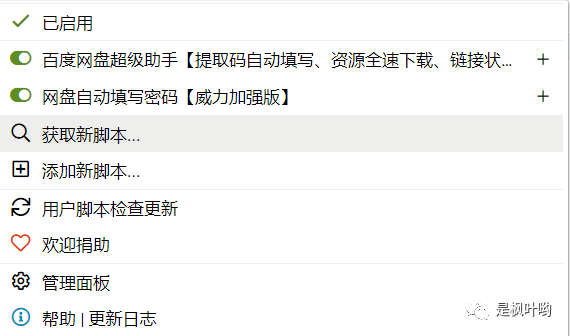 1、油猴插件,用来管理脚本,有了这个神器,你可以装很多脚本,比如百度云盘链接提取等