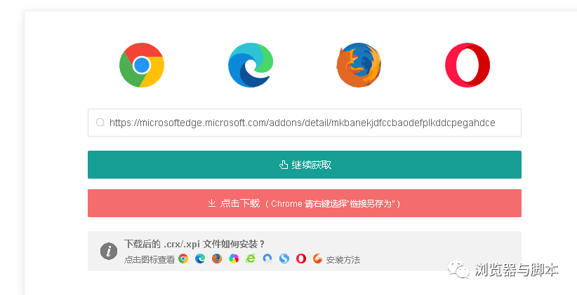 下载按钮的下面还有各种浏览器的插件安装方法。