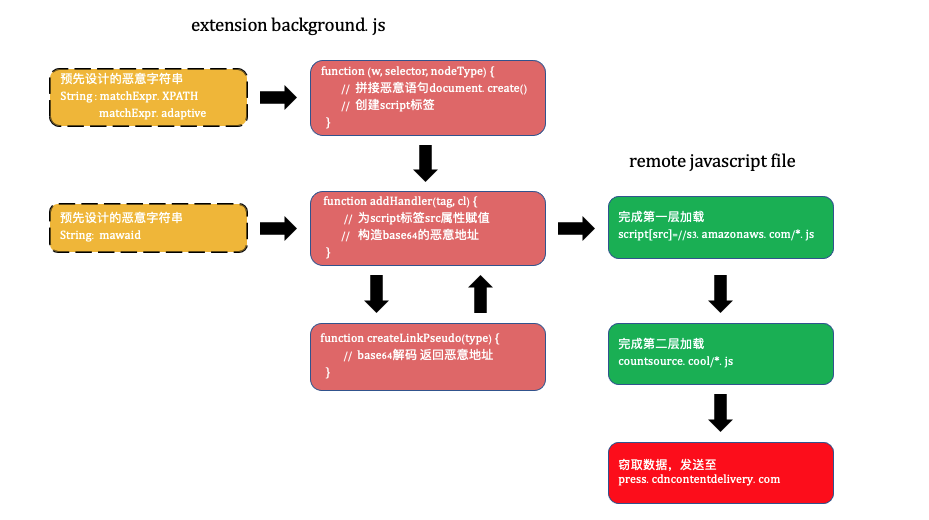 攻击者可以方便地通过传播恶意浏览器插件,达到控制用户浏览器加载远程恶意资源的目的。