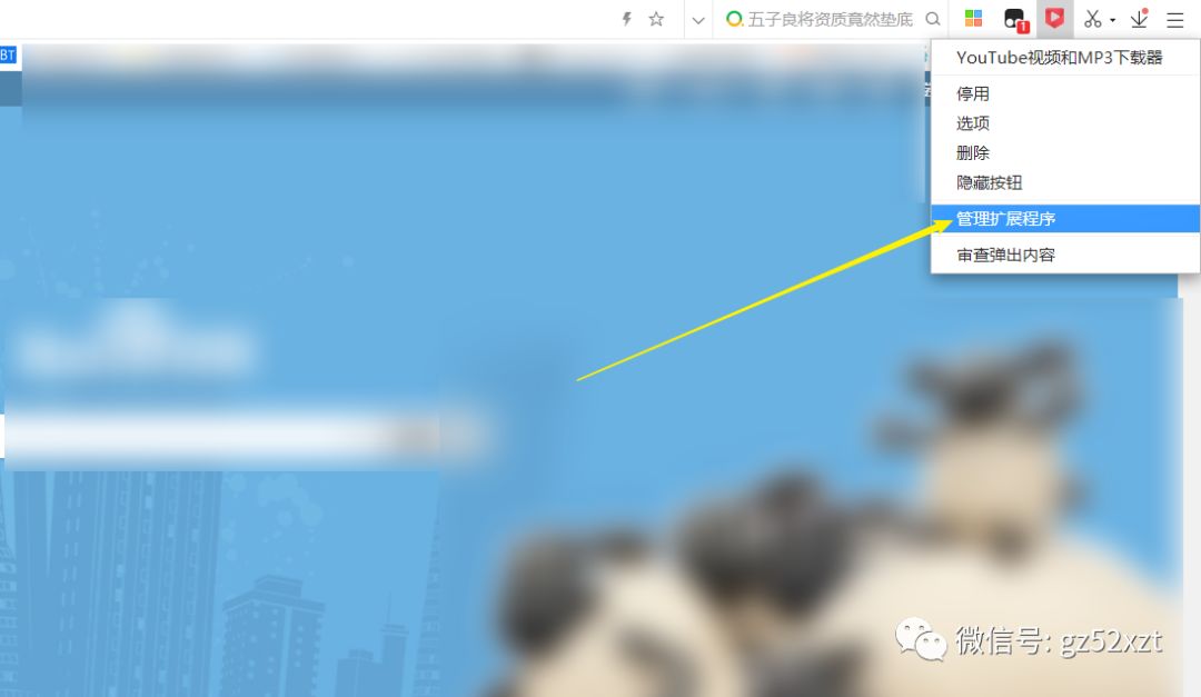 对准图标,鼠标右键,选择管理扩展程序