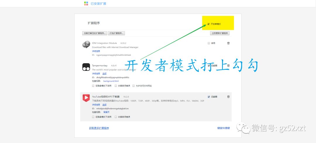 开发者模式打勾