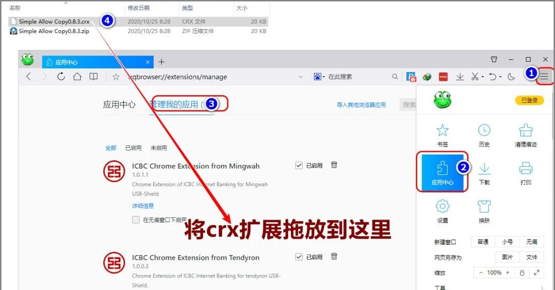 只要是浏览器插件,只要是扩展名为「.crx」的文件,都可以用这种方法安装。