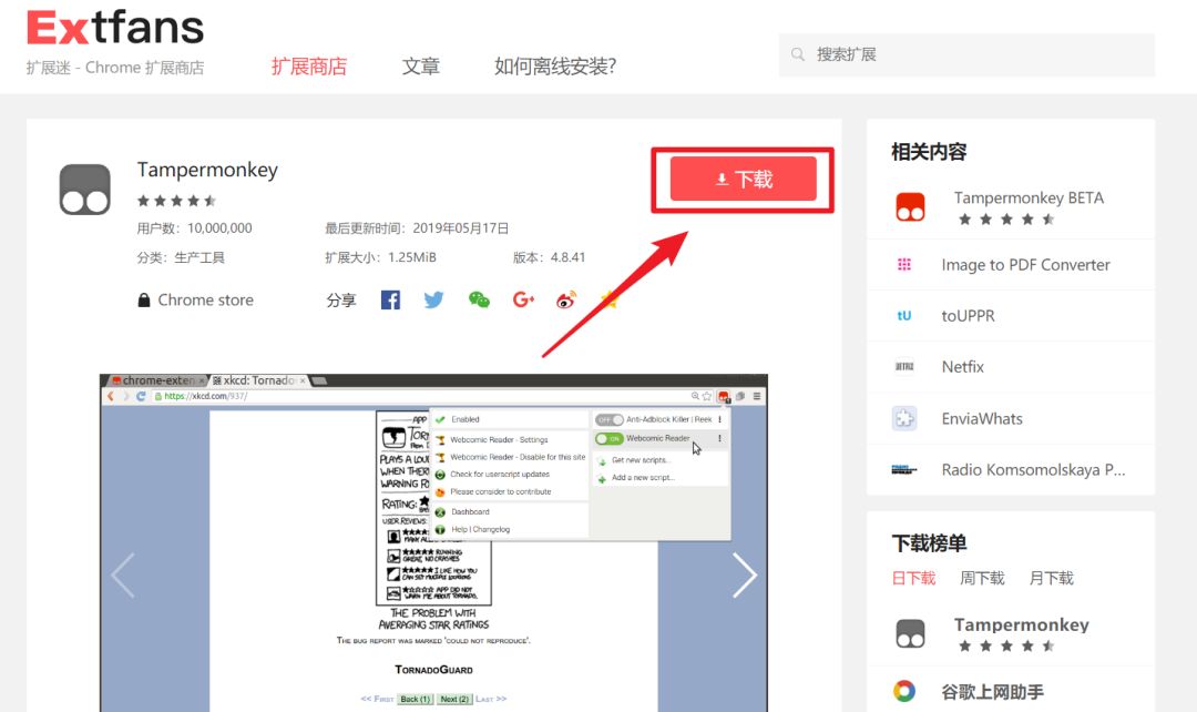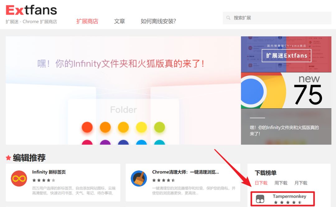 下载榜排在榜首的依然是之前推荐的油猴插件。