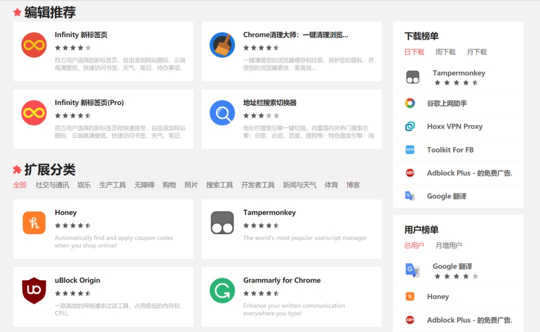 网址:https://chrome.google.com/webstore/category/extensions?hl=zh-CN