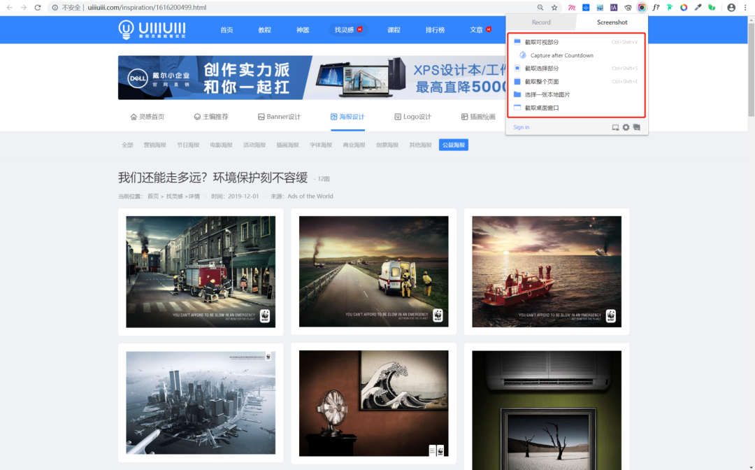 这一款插件有超强大的截图功能,包括窗口截图、可选区域截图、整页长截图等。