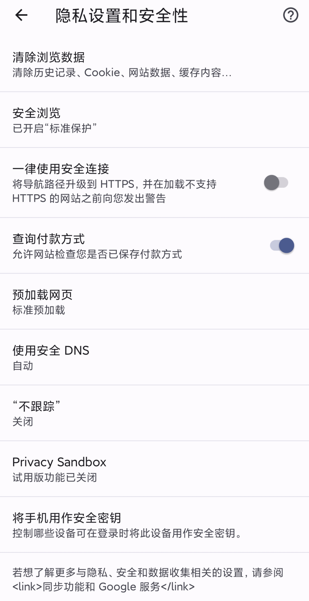 浏览器隐私保护基本上就是 Chrome 上的那一套,这里就不过多介绍了。