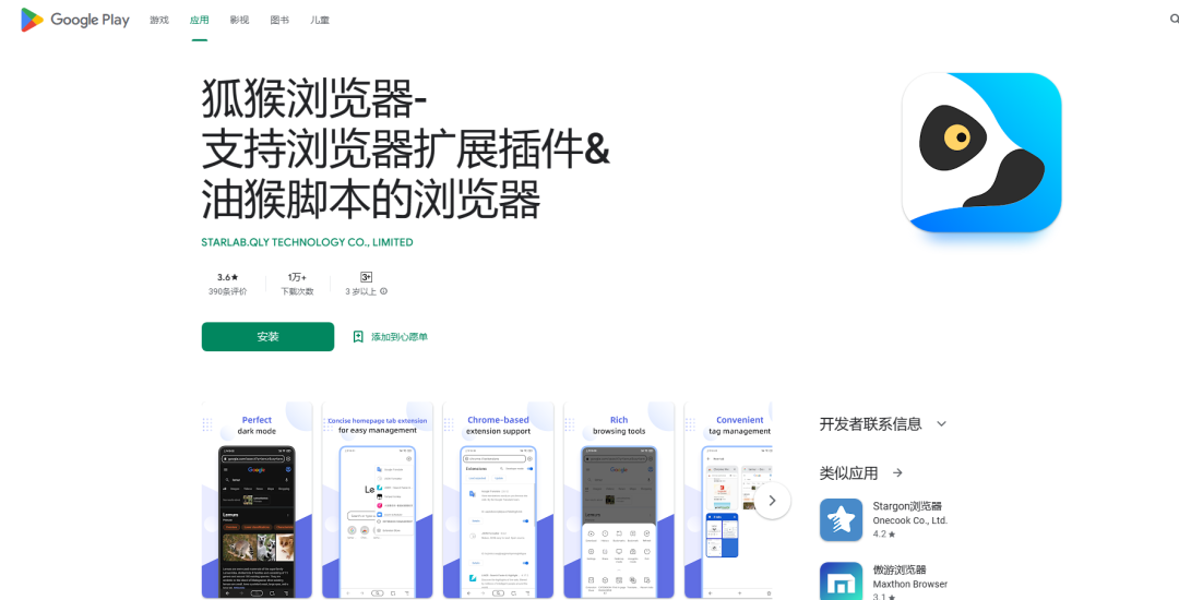 狐猴浏览器目前已经上架 Google Play Store 以及国内各大应用商店。